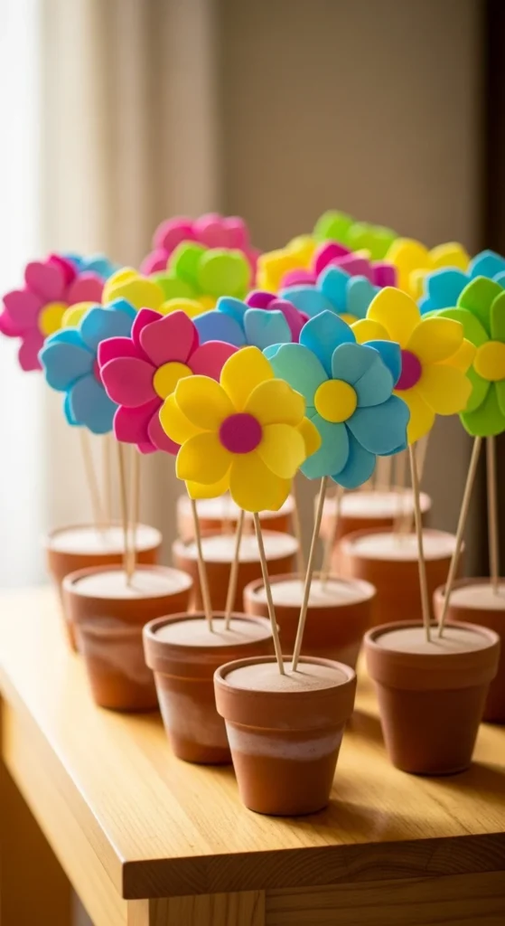 Foam flower garden picks are simple decor pieces that require no drying time. Cut foam sheets into flower shapes, attach them to sticks, and place them into pots or jars. These flowers last year after year and work well indoors. Foam scraps from other projects can be reused, making this a practical option for budget crafting. Bright colors stand out without added detail.