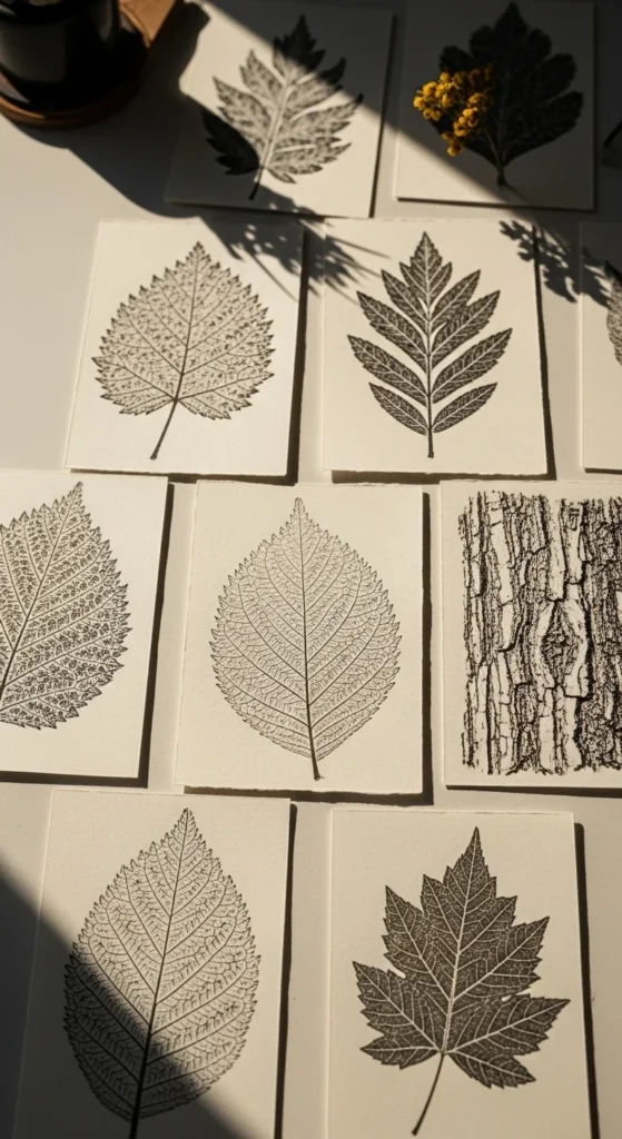 Nature texture rubbings require almost no prep. Place paper over leaves or bark and rub with crayons to reveal patterns. Each result looks different, making it a relaxing way to explore outdoor textures indoors.