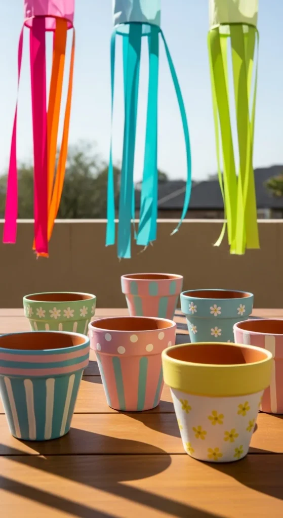 Use them for herbs, faux plants, or desk storage. Even small pots feel decorative once painted. These pots cost little and last season after season. Mistakes blend into the handmade look.