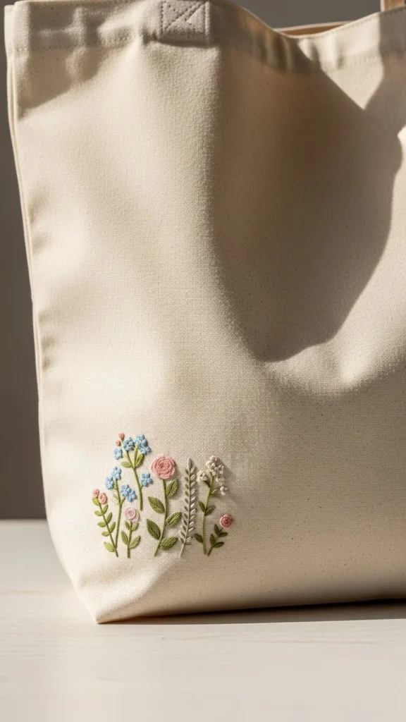 Use strong thread and simple stitches. Avoid dense fills. Light designs keep the bag flexible. This project feels practical and soothing.