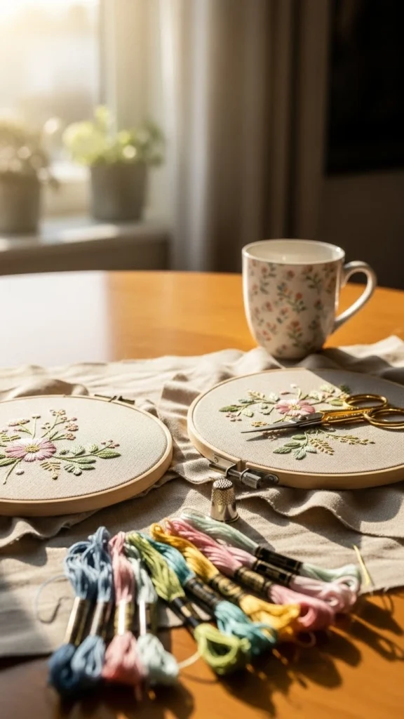 You don’t need fancy fabric. Plain cotton works. Smaller hoops save money and time. This project suits slow evenings when you want something meaningful but manageable.