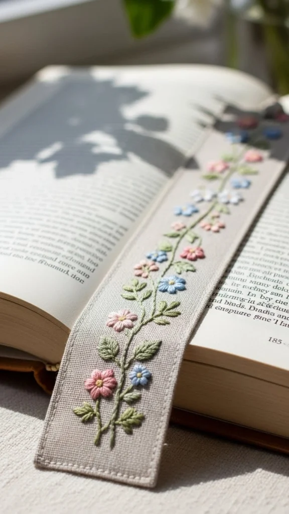 2.Embroidered Linen Bookmark