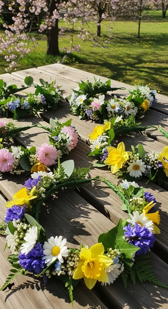 Flower crowns are quick and playful. Use flexible stems or string to form a circle. Tuck greenery and flowers into the base. These crowns work for pretend play or photos and can be refreshed easily with new blooms. Stick to fallen flowers to avoid picking.
