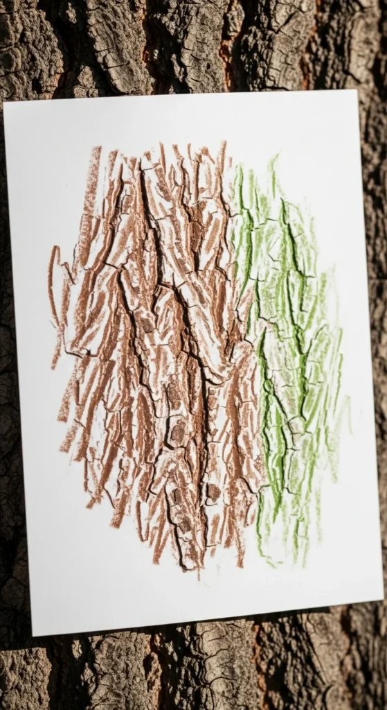 Bark rubbing art helps kids notice details they usually walk past. Bring paper and crayons outside and place the paper directly against tree bark, wooden fences, or large roots. Rub the side of the crayon gently across the surface to reveal patterns underneath. Each tree produces a different result, which makes comparison part of the fun. This activity works well during short walks and requires no setup at home. Kids can label their rubbings by tree type or location if they want to extend the activity. Finished pages can be kept in folders or nature journals. Cleanup is easy since everything stays outdoors, and the materials fit into a small bag for repeat use.