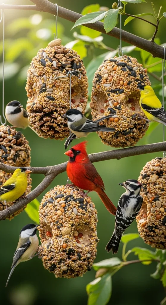 Pinecone bird feeders mix crafting with outdoor observation. Tie string securely around a pinecone. Spread peanut butter or seed butter into the gaps using a spoon or stick. Roll the pinecone in birdseed until coated. Hang it from a low branch where birds can reach it safely. Kids enjoy spreading and rolling while adults help with hanging. Place feeders near a window so children can watch birds visit. Extra seed stores easily in jars. This project works well for families and classrooms because it takes little time and cleanup stays minimal.
