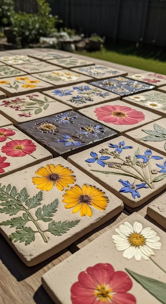 Pressed flower clay tiles preserve spring designs longer. Flatten air-dry clay into small tiles and press flowers gently into the surface. Remove the flowers or leave impressions based on preference. Let tiles dry fully outdoors. Seal lightly with glue if desired. These tiles work as decorations, ornaments, or gifts. Clay scraps can be reused, keeping waste low. This project suits older kids who enjoy detailed work and patience.