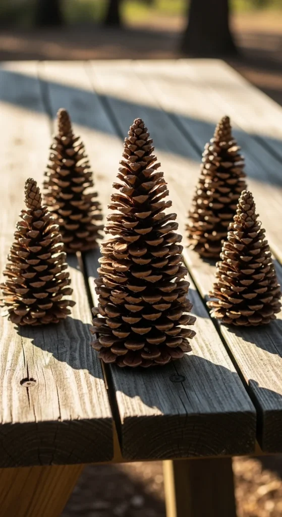 Pinecone tree decor uses stacking and balance skills. Choose pinecones of similar size and glue them into cone shapes. Let dry fully before moving. These small trees work as table displays or shelf accents. Kids can experiment with height and spacing. Extra pinecones store easily for later use. This craft uses seasonal finds and basic glue for a simple but satisfying result.