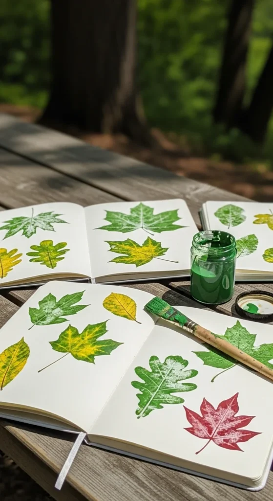 Nature journals help kids record outdoor experiences. Paint one side of a leaf lightly and press it onto notebook pages. Add dates, colors, or locations if desired. Journals can be revisited throughout spring to compare changes. This activity supports observation and routine while staying flexible. Pages do not need to look perfect. Journals store easily and grow over time without pressure.