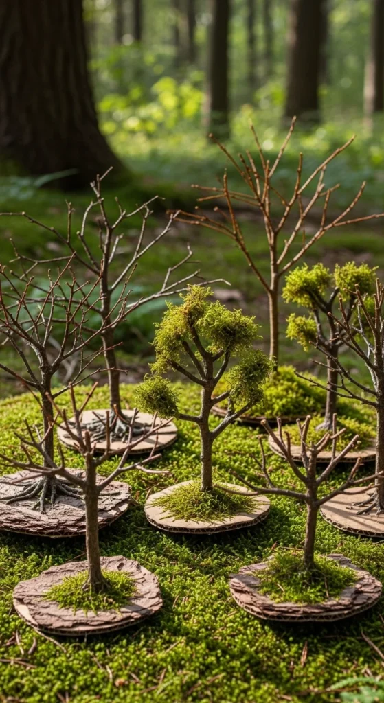 Twig tree sculptures use sticks collected during walks. Arrange twigs into branching shapes and glue them onto cardboard or clay bases. Kids can count branches or leaves as they work. Natural colors look good without paint. This project turns yard cleanup into a creative activity.