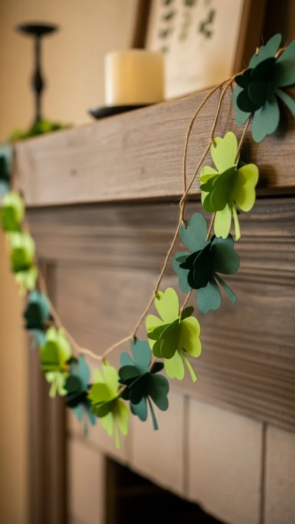 Cut shamrocks from textured cardstock or craft paper. String them with twine or ribbon, spacing evenly.