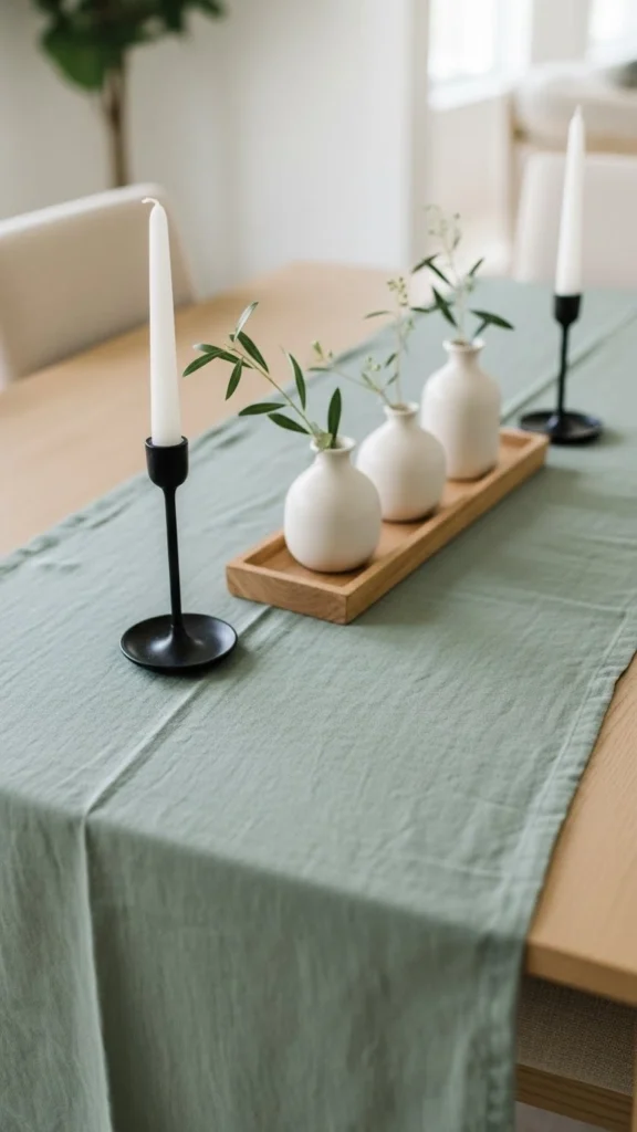 Fabric runners feel softer than plastic versions. Dye or paint a simple runner in a muted green shade.
