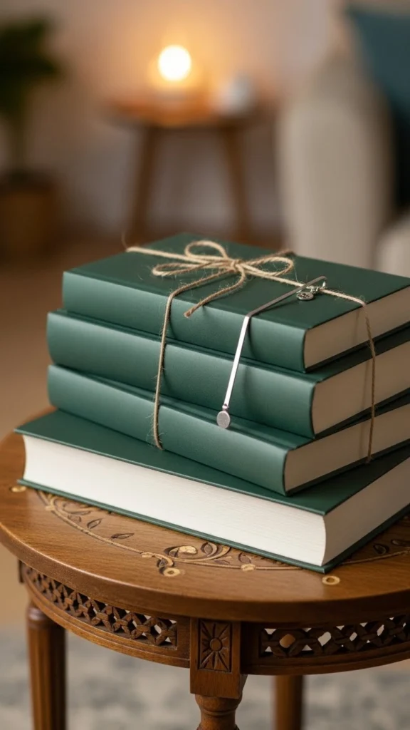 Wrap old books with green paper or fabric. Add simple twine or a small charm.
