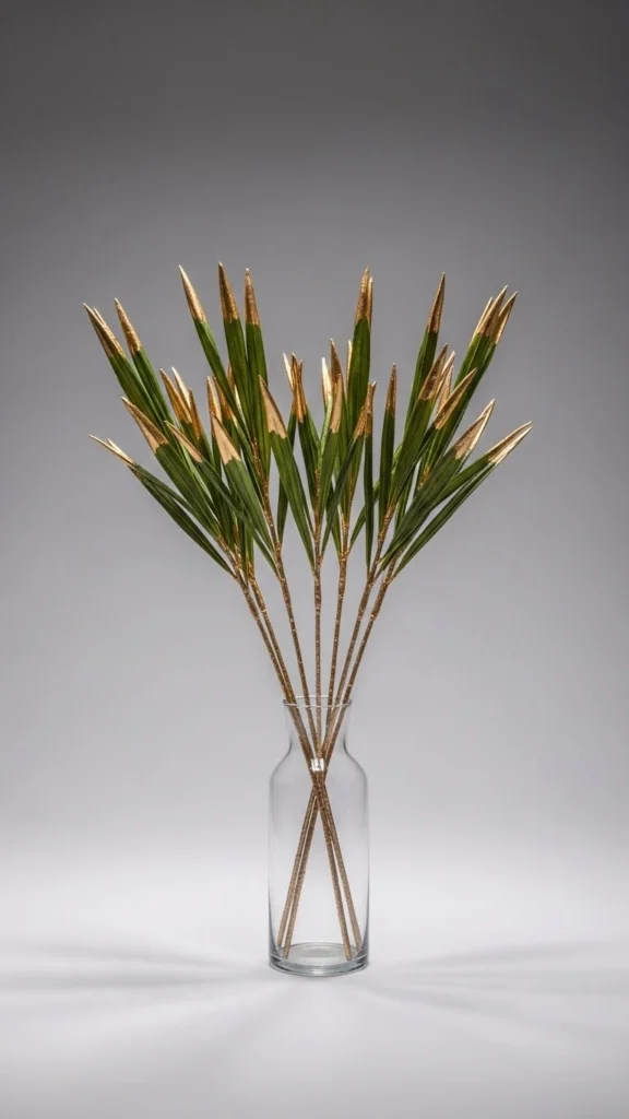Place them in clear or white vases. The gold adds contrast without overpowering the green.