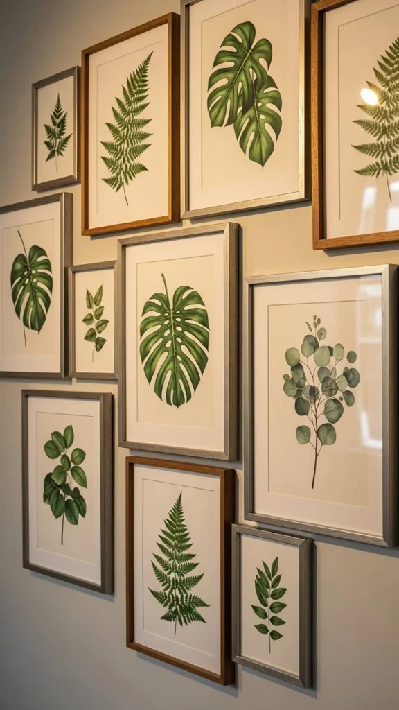 Printable botanicals in green tones feel calm and art-like. Use matching frames for a unified look.