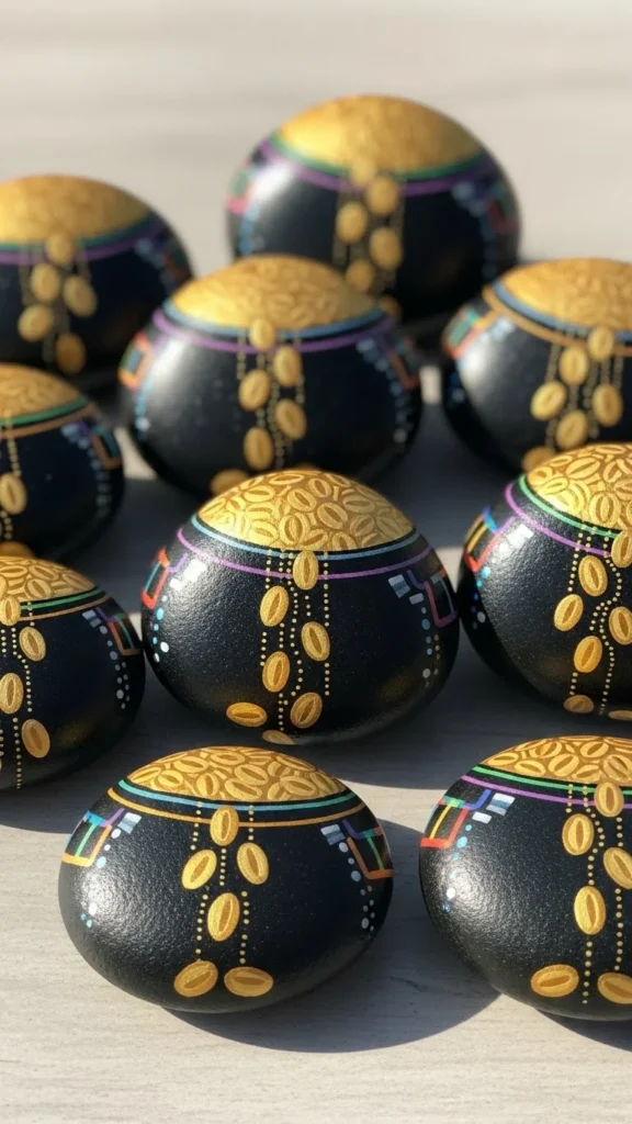 Painting rocks keeps kids engaged without complicated steps. Paint a smooth rock black and let it dry. Add gold dots or circles for coins and a small rainbow on the side. Seal with clear glue or varnish if desired. This craft works well outdoors and avoids paper mess. Painted rocks can be used as decorations or hidden for holiday games.