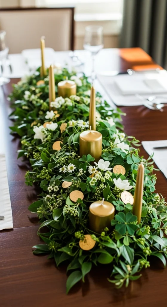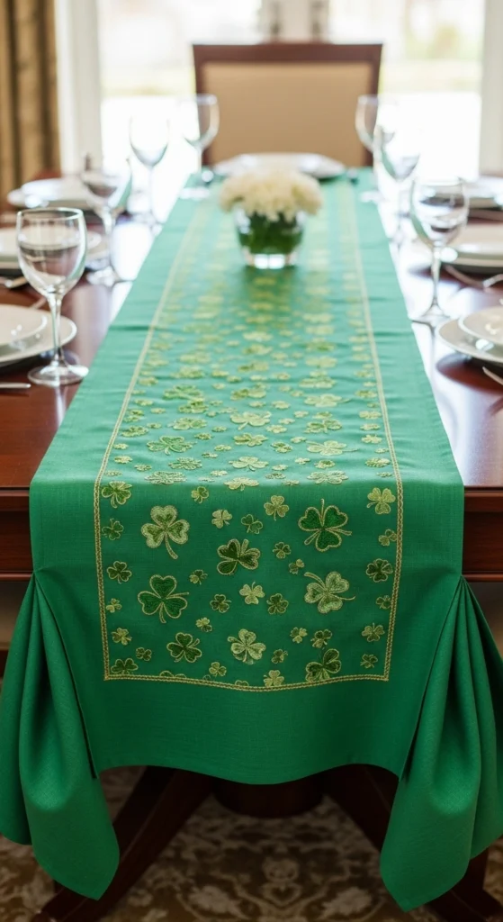 A table runner helps anchor all your decorations in one cohesive look. Choose green fabric or felt and decorate it with shamrocks or simple stitched patterns. Lay it down the center of the table to frame candles and centerpieces. This instantly adds color and structure to your setup. It also protects the table while enhancing the festive feel.