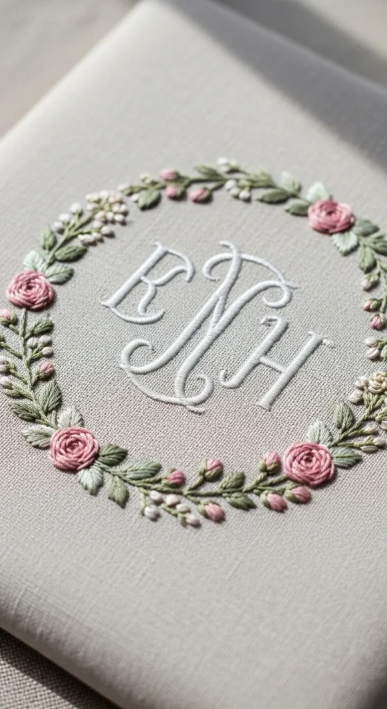 Monogram embroidery is one of the most practical pattern ideas because it works for gifts, keepsakes, home linens, and clothing details. A single stitched initial can look beautiful on a handkerchief, napkin, shirt cuff, tote bag, or baby gift. You can keep it very simple with clean lettering, or add a tiny floral stem, leaf wreath, or dotted border around the letter for a softer look. This type of design is ideal if you want a smaller project that still feels meaningful. It is also budget-friendly because you only need a small amount of thread and one main motif. A nice trick is to trace the letter lightly first and then stitch slowly rather than trying to freehand it on fabric. Block letters look modern and neat, while script initials feel more romantic. This style also works well for practicing line consistency because the shape is clear and focused. Personalized embroidery often feels more special than larger decorative patterns because it connects directly to a name or memory. It is a strong option for anyone who wants a DIY project that is simple, elegant, and easy to tailor for birthdays, weddings, or house gifts.