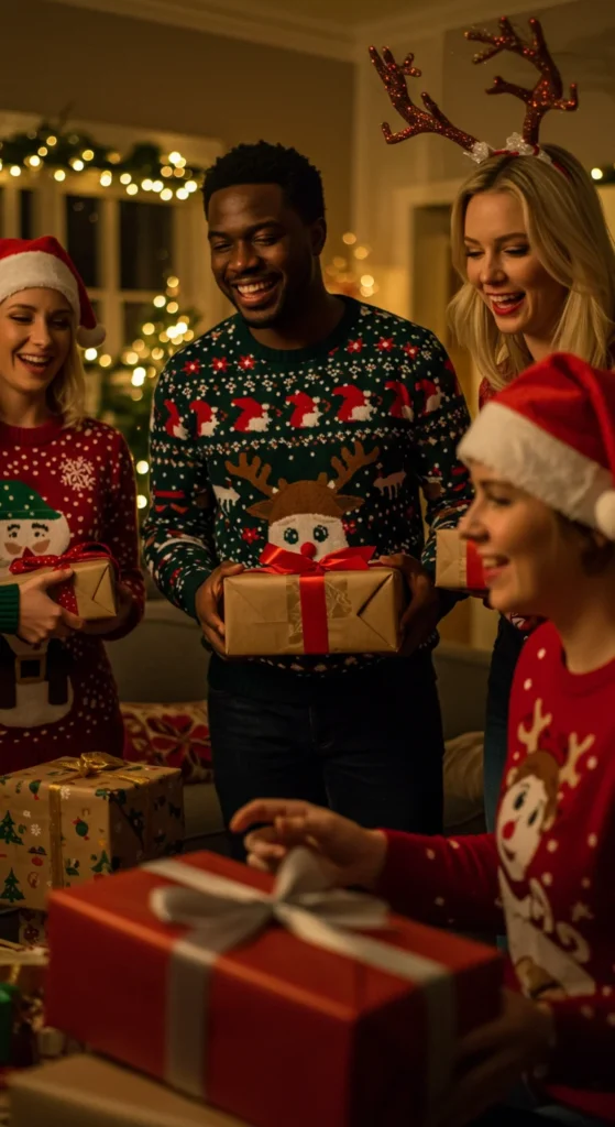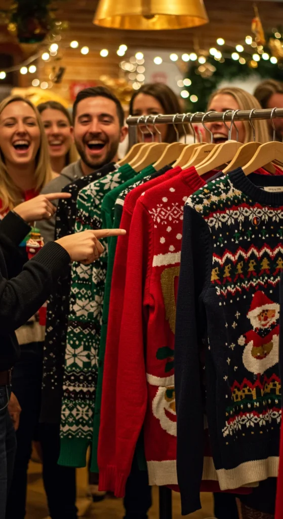 Encourage guests to bring an extra ugly sweater to swap. It’s a great icebreaker and perfect for those who forgot to wear one. You can even turn it into a “mystery exchange” where people pick wrapped sweaters blindly.