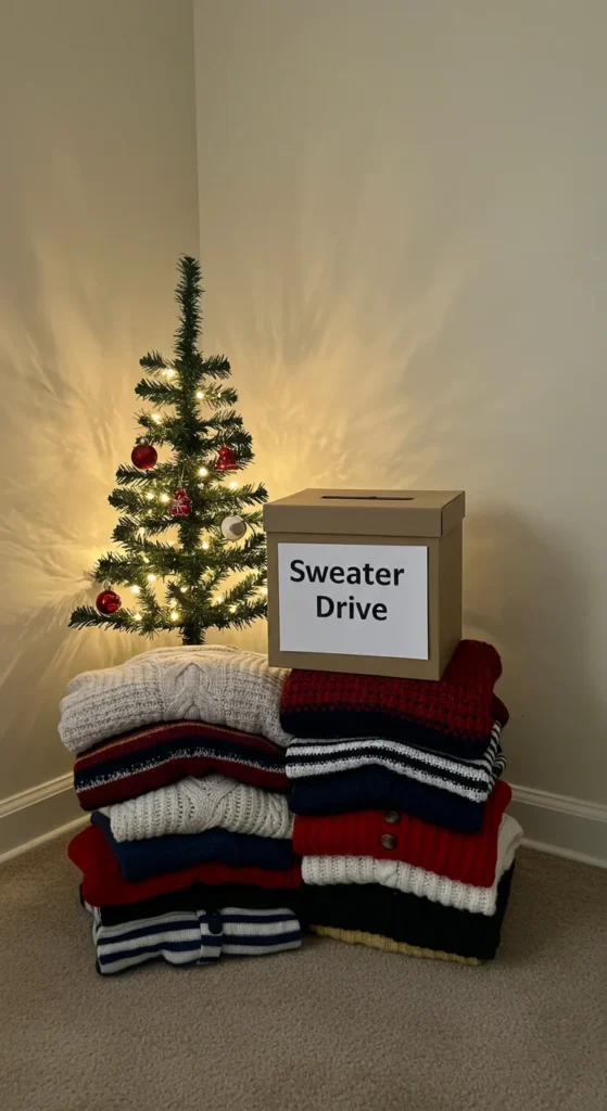 Set up a DIY ugly sweater bar with glue guns, pom-poms, ornaments, and fabric paint. Guests can grab a blank sweater and go wild with decorations. Keep supplies simple—old Christmas decor, safety pins, and leftover craft materials do wonders. Play holiday music while everyone creates their masterpieces. It’s budget-friendly, interactive, and guarantees every guest leaves with a unique look that fits the party vibe.