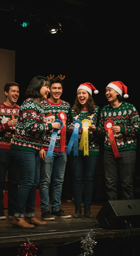 Have groups come dressed in themed sweaters—like elves, reindeer, or snowmen. It creates funny photo ops and team spirit. Offer a “Best Group Theme” prize to spark creativity. You can even make them using cheap iron-on transfers.