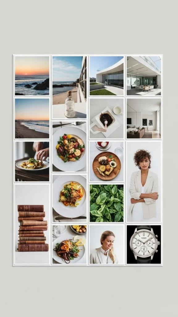 A monochrome board feels sharp and modern. Gather black-and-white images to reduce distraction. This board suits those who prefer simplicity but still want strong visual impact.
