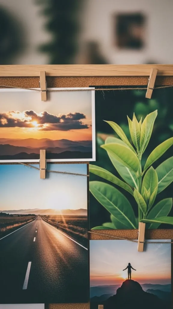 Instead of text affirmations, use symbolic photos that evoke the feeling you want—growth, clarity, joy, strength. This keeps the board clean while still inspiring your mindset.