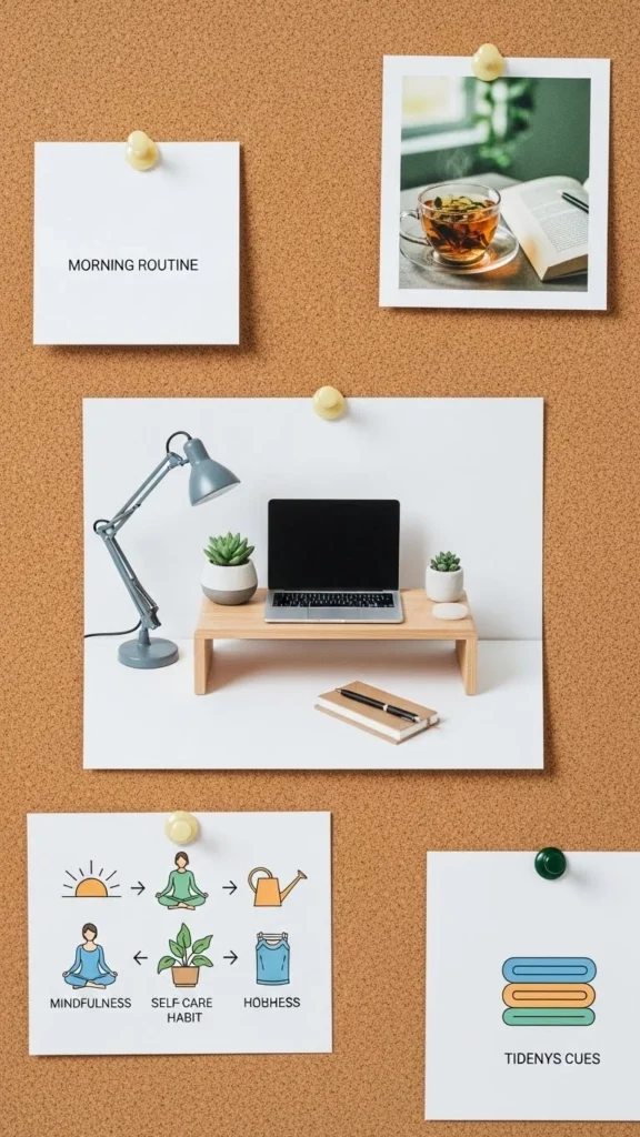 Morning routines shape your day. Add visuals showing soft sunlight, warm drinks, journaling, clean spaces, and slow breakfasts. This board helps you stay mindful of simple habits. Use gentle yellow or beige tones to match morning light.