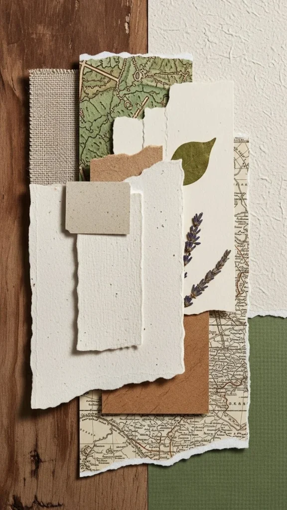 If you want your year to feel warm and comforting, build a cozy lifestyle board. Include photos of blankets, candles, tidy corners, warm drinks, and soft textures. This board supports self-care goals, slower routines, and home-focused intentions. Use neutral tape, dried flowers, or soft-toned cardstock to maintain the warm theme.