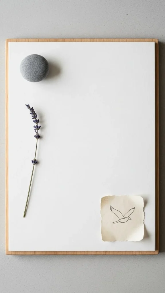 Use white as the background and keep images spaced out. This helps ideas feel clear and uncluttered. Perfect for mental reset years or simplifying life goals.