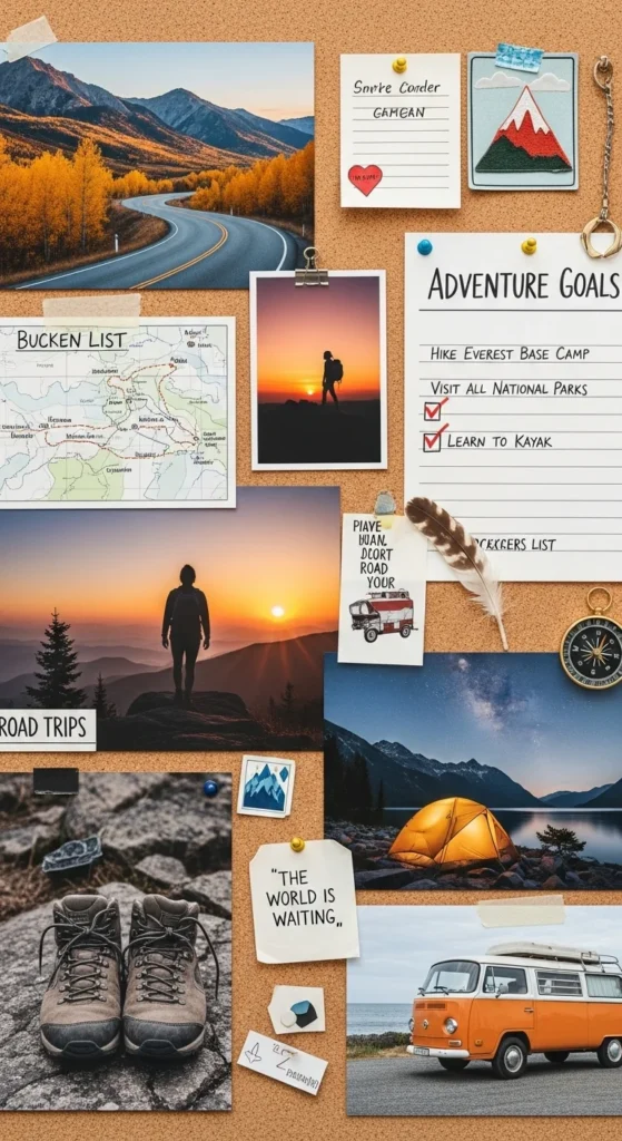 Add visuals of short trips. Place it near your planner. This board connects dreams with planning.