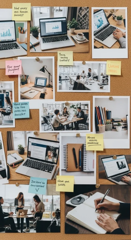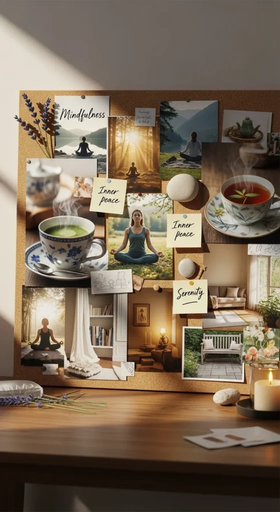 Add visuals of hobbies and quiet time. Place it near your planner. This board reminds you to protect personal time.