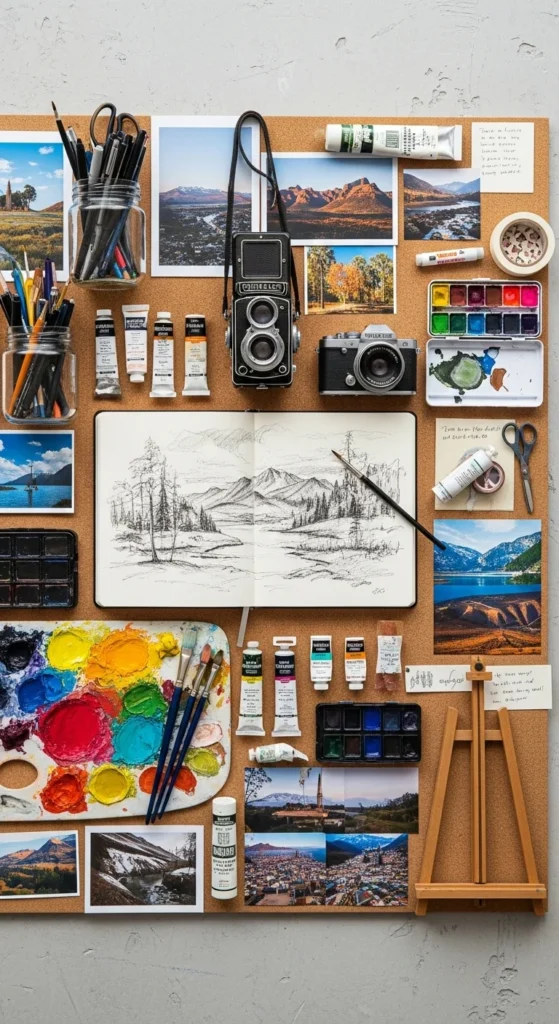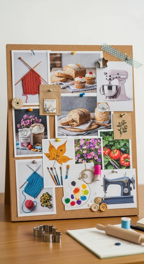 Add visuals of hobby time. Keep it near your creative space. This board makes hobbies feel natural.