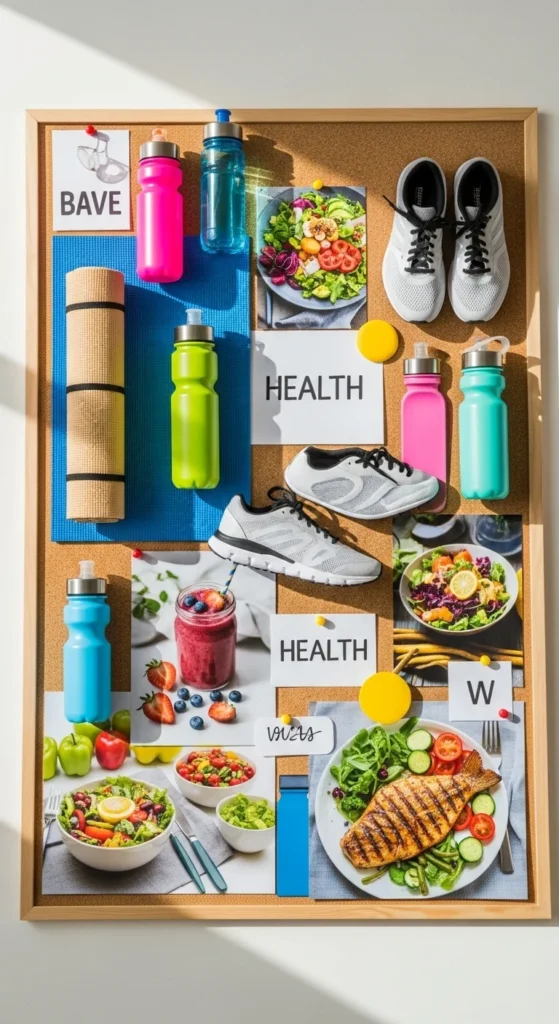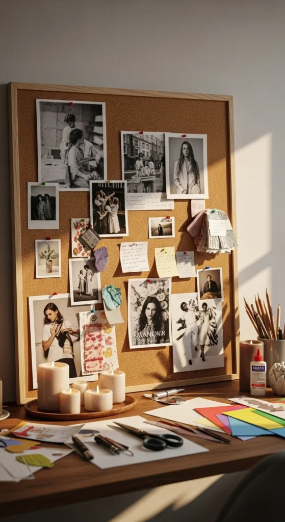 Place it where you plan your day. DIY tip: Mix photos with drawings. This board connects long-term dreams with everyday habits.