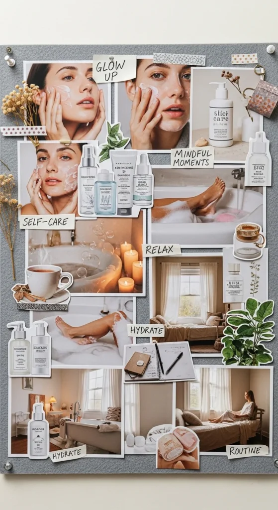 Add visuals of morning and evening rituals. Place it near your mirror. This board supports personal care.