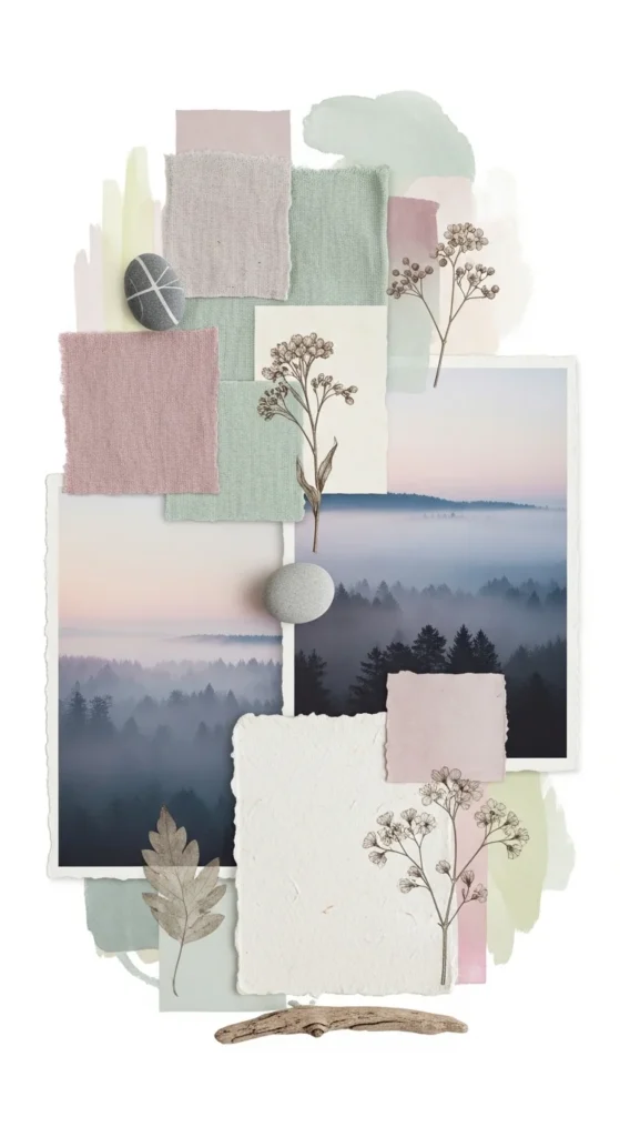 Pink boards feel gentle and encouraging. Add photos that represent kindness, self-love, and gentle routines. This board supports emotional healing and comfort goals.