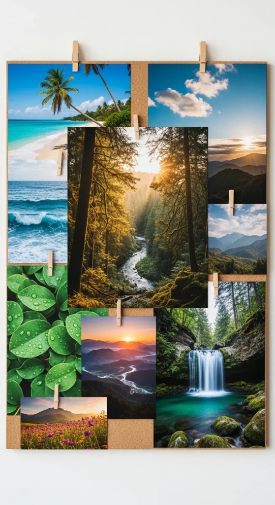 If you want more outdoor time in 2026, gather images of nature scenes forests, waterfalls, mountains, and gentle fields. Green-heavy boards encourage grounding and connection.