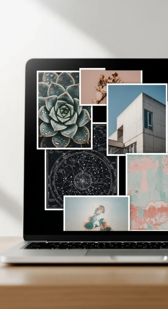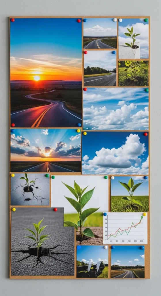 Use symbols that represent direction, grounding, or expansion. This keeps your board visually clean while still meaningful. Good for abstract or personal growth themes.