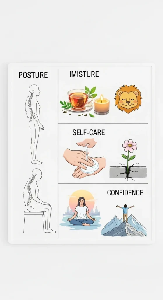 Focus on realistic cues, smoothies, morning sunlight, stretching, water pitchers, and tidy kitchens. These symbols encourage consistency without pressure.